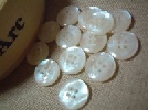クローバー模様のウッドボタンが写っている場合は直径13mmです。柄の大きさの参考にしてください。