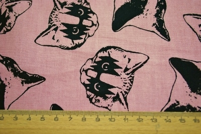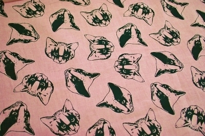 生地幅約106cm 綿100% ¥524/50cm 商用利用不可 ネコポス不可 クリックポストご利用可能 アパレル残の3柄の中では1番厚みがありますがこちらもビエラという生地になります。まるでKISSみたいなお顔の猫が格好可愛いです。こちらは厚地ではありませんがボトムにも使えそうな感じです。 在庫限り、再入荷無し。
