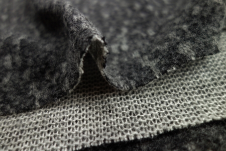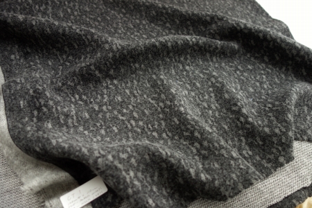 レース有効幅約120cm 混率 グランド アクリル80% ウール20% レース部分 ナイロン52% コットン48% 宅急便のみご利用可能 テンション低3080円/カット 薄手のニットにニードルパンチでレースをあわせてあるニットです。厳密には接結とは言わないのかもしれませんが、分かりやすいので。グレー杢のゆる編みのベース部分+チャコール~ブラックのレースがあわせてあります。[ シール下の欠けている部分は長さに含まれていません] テンション低めです。ショートボレロとか可愛いなぁと思います。レース使いの繊細なニットなのでお取扱いはドライクリーニング推奨、ご自宅でお洗濯される場合は自己責任にて手洗い+ウール向けホームクリーニング剤でお願いします。 アパレル残反のため在庫限り、再入荷予定無し 日本製