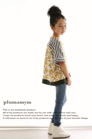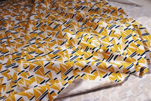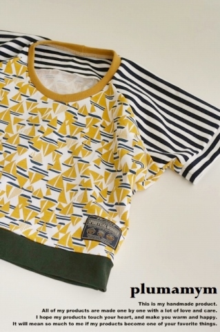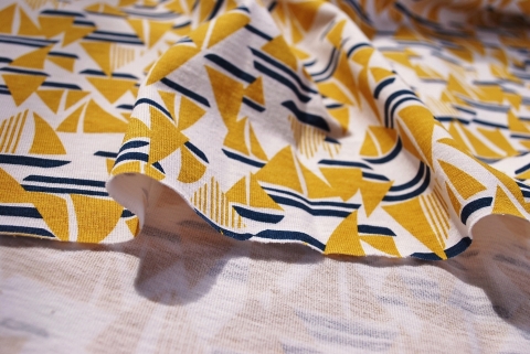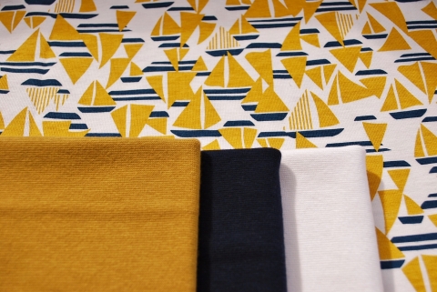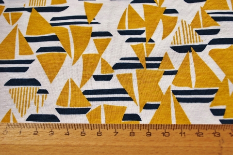 オリジナル:ヨット柄天竺・オフ+マスタード×ネイビー