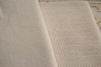 ネコポス50cm クリックポスト1mまでご利用可能 50cm単位のオーダーカット生地です 50cm=数量1 1m=数量2 1.5m=3数量3・・・ 綿100% 125cm幅 地模様のある涼しげな綿ジャガードニットです 上品な雰囲気があります スパッツやカーデ、ドルマンスリーブなどはいかがでしょうか?編み模様の部分に多少透け感がございます。テンション低 付属は30/40スパンフライス生成りがお勧めです ・縫製にはニット用の針、糸をご使用下さい。・縫製前には地直ししてからご使用下さい。