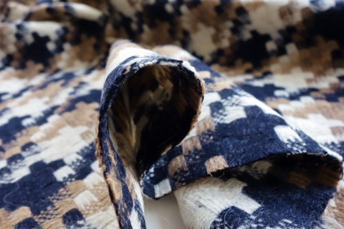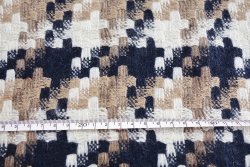 生地幅約135cm ウール50% ポリエステル50% ¥1130/50cm(税抜) 宅急便配送のみ 200~300種類程度の中から今回ご紹介の生地を選んだのでもちろん全部好きなものだけなのですが、この生地は一目で気に入った生地です。ちょっとクラシックな懐かしいような感じもしますが新しさを感じる、よく考えられた配色と織り方。バッグにもしたり、ポーチも欲しい、初めて裏地を付けたコートにも挑戦してみたい!という生地です。ワンピースやスカートにもOKな厚み、コートにするには裏地をオススメします。在庫限り、再入荷無し。お洗濯はドライクリーニング推奨、ご家庭でお洗濯される場合はウール用の洗剤で自己責任でお願いします。