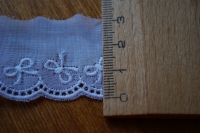 1m単位でご注文ください(1m=1個) すべての配送方法可能です コットン100% オフホワイトのレースです。 1反の最大の長さは14mになりますのでそれ以上の長さの場合は2本に分けてのお届けとなります【18mご注文の場合8m+10mなどランダムになります】