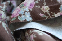 ネコポス2m クリックポスト2.5mまでご利用可能 生地幅約107cm 綿100% ¥448/50cm アンティーク風のローズ柄が素敵なシャツコールテンです。明るめの栗色をベースに大き目のバラが散っていてステキです。スカート、ワンピースなどにオススメです。