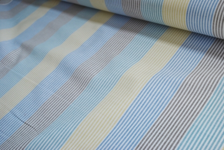 生地幅約112cm コットン100% ¥420/50cm ネコポス2mまで、クリックポスト2.5mまでご利用可能 爽やかなブルー系をメインに差し色が素敵なオックスです。そんなに厚地ではないので(ダンガリーシャツのイメージで)シャツに!マルチカラーのストライプなので柄あわせを気にせずに仕立てて頂くといいかな、と思います。ペチコートにあわせてタックたっぷりのスカートにしても可愛いかも。想像力が広がる生地です!