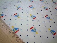 ネコポス1.5m クリックポスト2mまでご利用可能 50cm単位でご注文下さい(50cm=1個/1m=2個・・・)110cm幅 コットン100% コットンに発泡プリントでヨットが描いてあり、とっても爽やかです。 バッグの中布なんかにお使いいただいてもステキです。