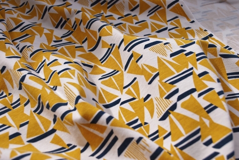 オリジナル:ヨット柄天竺・オフ+マスタード×ネイビー