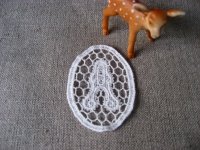 アンティーク風のイニシャルモチーフ、Aが2枚のセットです。コットン100% 縦約55mm 横約45mm 繊細なレースです、バッグやお洋服のワンポイントにぜひ!縫い付けタイプです すべての配送方法ご利用可能