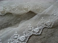 1m単位でご注文ください(1m=1個) すべての配送方法可能です 1m¥290 ベース・ナイロン100% フロント・レーヨン100% バック・コットン100% 繊細なチュールレースです。本当にかわいいです!!
